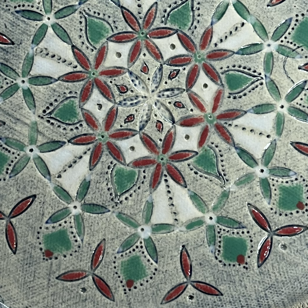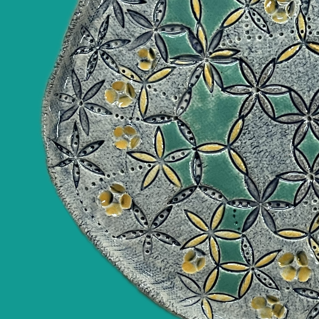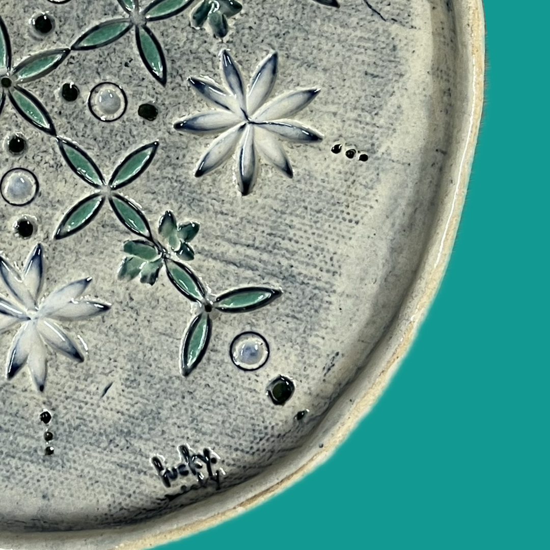 This is a relaxation pottery workshop, where we will leave common day thoughts behind and we will dive into the process of making a mandala on a plate. Step by step and stamp by stamp we will be looking for our structure and rhythm and imprint it into soft clay. And when done, we will dive into our picture once more with colour and leaf by leaf, line by line, dot by dot we will give our picture colour - life, if you may. The plate will be glazed and fired afterwards and ready for handover within 2-3 weeks time.
